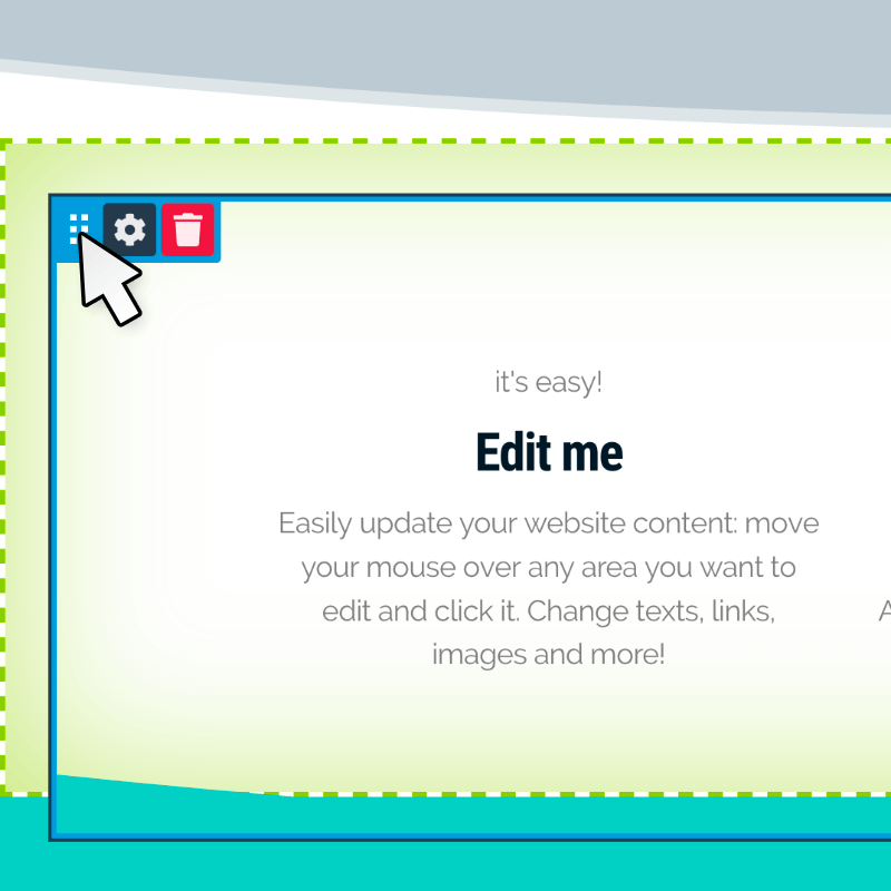 Most of your website elements are editable. Just move your mouse over the area you want to change and click to start editing: text, image. videos or an app like Gallery or Shop.